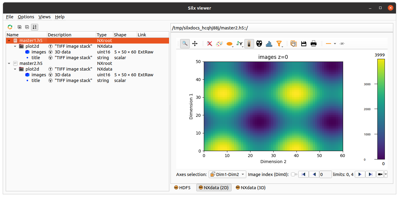 When defining an external binary dataset with a list of filenames, the source files will be opened and inspected. In addition the HDF5 dataset will store absolute file names so moving the data will break the link. See Merging URL’s for details on how data is merged (preserve shape vs. stack vs. concatenate behavior).